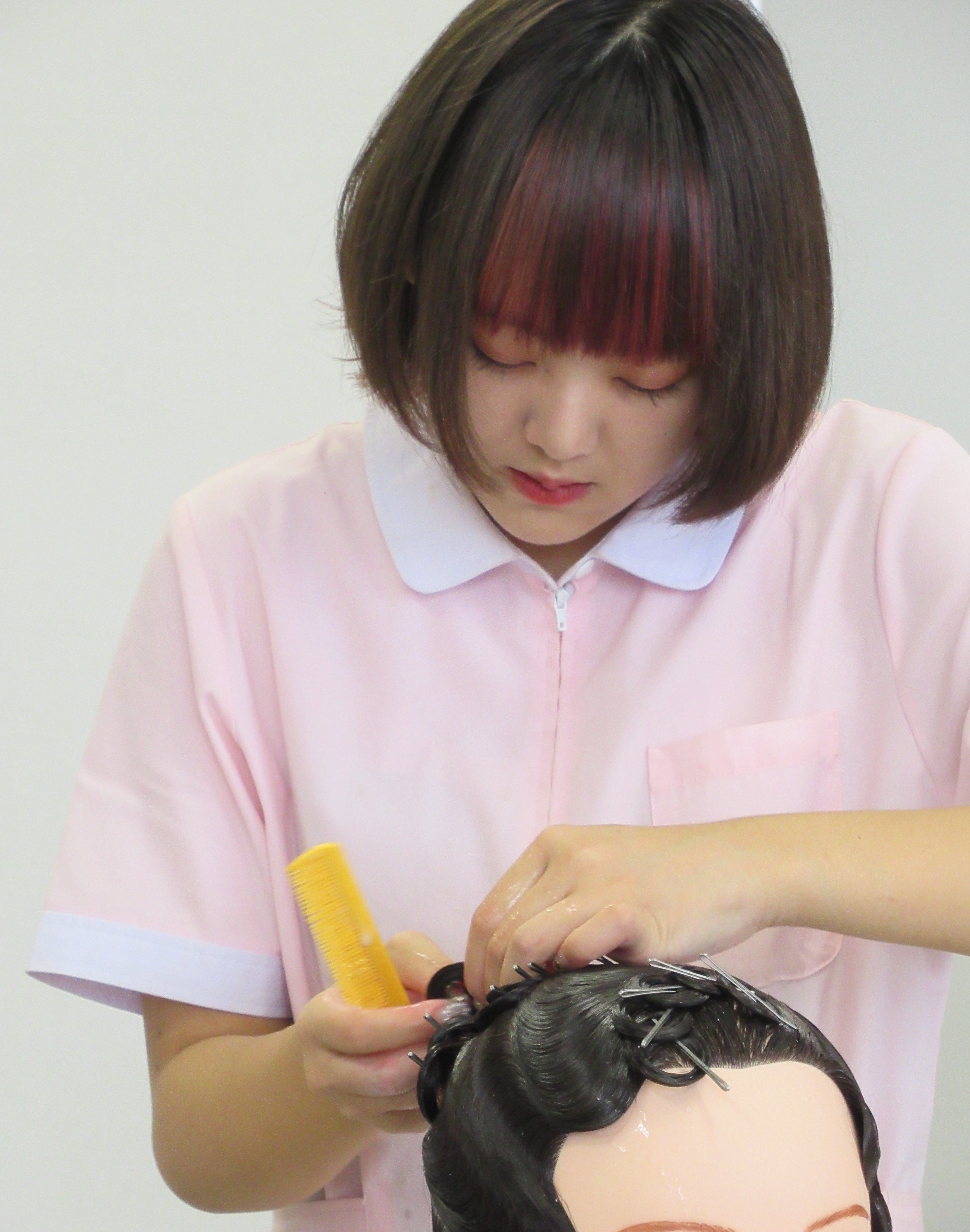 構成とバランスを良くすること、そしてカールを1つ1つ丁寧に作りました。今まで担任の先生方に教えて頂いたことを意識して授業以外にも放課後練習しました。本当に嬉しかったです。優勝ありがとうございます!! 今後、自分で課題をみつけながら頑張っていきたいです。